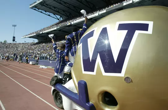 After a decade-long hiatus, a vehicular UW helmet will again punctuate the celebration of Husky scoring plays.