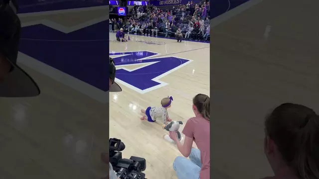 That was a close one! 😮💨 #gohuskies #basketball #adorable #babyrace #halftimeshow #aww